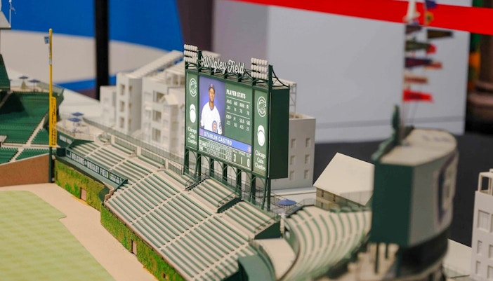 A sweeping scale model of downtown Chicago featuring 4,000+ buildings, animated with a short film and interactive touchscreens that let you search by architect, building, or era.