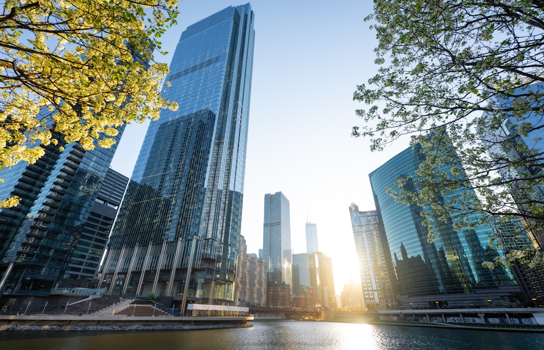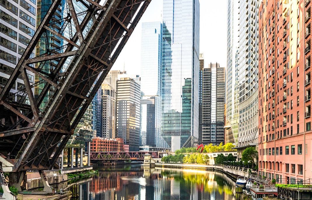 ✔️ Vista do Rio Chicago, do Lago Michigan e do horizonte